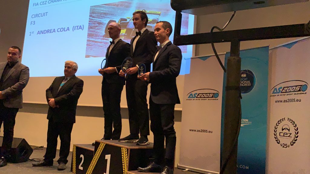 Venerdì sera, a Lubiana (Slovenia), Andrea Cola ha ricevuto la Coppa per la vittoria del Campionato FIA-CEZ F3 2018. La serata si è svolta presso l’Hotel Sheraton, dove Andrea ha concluso con la consegna del trofeo più importante un’altra stagione al top, con il secondo successo di fila in questa categoria.