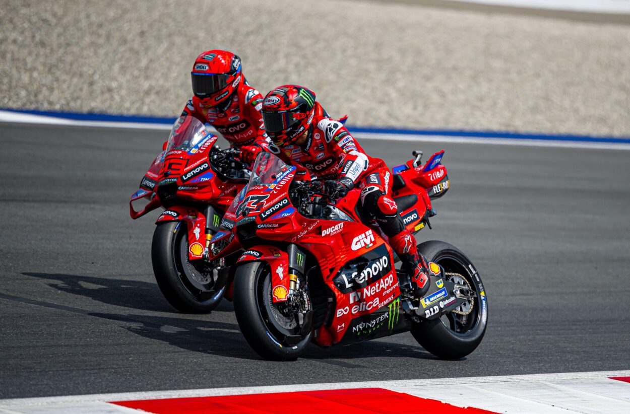 Sarei molto curioso di sapere cosa si direbbe della seconda sella Ducati se a guidarla in questa stagione non ci fosse Pecco Bagnaia, allievo di scuola Rossi e protetto della stampa italiana, o viceversa. Probabilmente le discussioni non sarebbero lontane da quelle che in Formula 1 si fanno non tanto su Lewis Hamilton ma, ad esempio, sul secondo sedile della Red Bull: da una parte un cannibale, dall’altra un pilota — anzi due, nel caso di Milton Keynes — in evidente difficoltà.