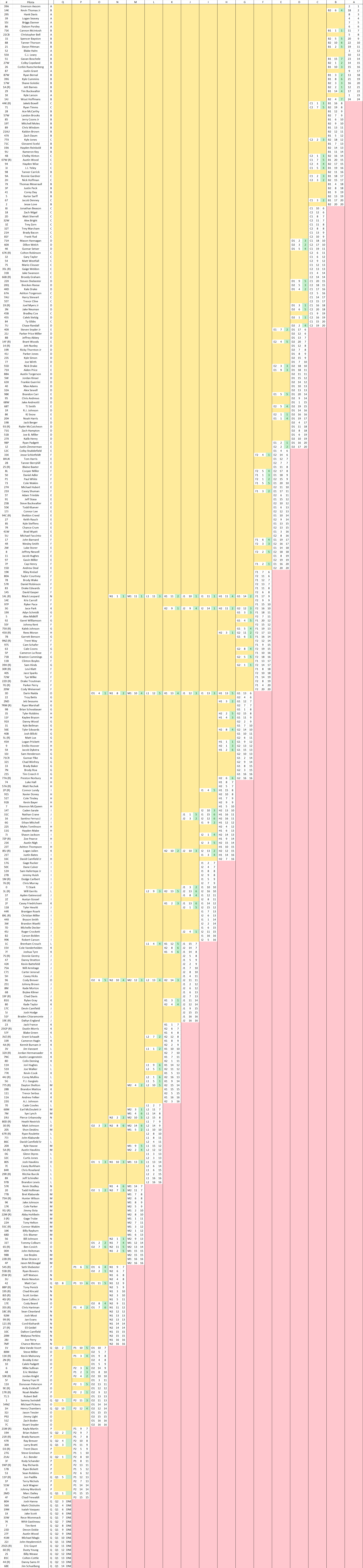Dopo un lungo movimento per sistemare i superstiti, la vera Alphabet Soup inizia dalla lettera P con 15 auto sulla carta (le 10 già previste più le cinque dalla Q) e alla fine 13 presenti (manca Dailey, quindi sulla carta il prossimo anno in griglia ci sarà un altro giornalista di FloRacing oltre a Clinton Boyles). Finalmente si parte con Gresham e Webber in prima fila, ma i commissari espongono la bandiera gialla perché non convinti della procedura. Si ririparte e Webber scappa via, ma in rimonta arriva Seth Shebester che passa tutti si invola. Recupera terreno Vande Voort malgrado un contatto col muro. Chi finisce direttamente nel muro in curva3, quasi prendendo d’infilata la rampa d’uscita, è Padilla e arriva la caution. Green ai -3 e scappano in tre perché Gresham parte a rilento. Bandiera gialla e ripartenza con la stessa identica scena e allora i commissari decidono di intervenire, ma prima di questo il pilota stesso decide di mettersi in coda per evitare ulteriori guai. Anche se siamo alla P1, le battaglie non mancano per essere in top6 e passare al turno successivo. Ransom è sesto, ma Carr lo aggira ai -2 prima di rimbalzare indietro dietro a Kayle Martin, all’ultimo giro Ransom finisce larghissimo e quindi Carr torna in posizione buona. Vince Seth Shebester su Hartman, Webber, Mahoney, Vande Voort e Carr.