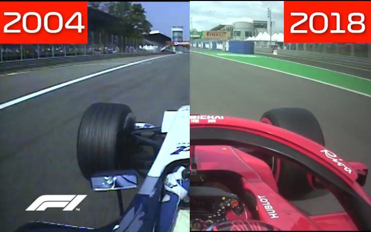 Più veloce sul dritto e molto più lenta in curva: così risulta la Williams di quattordici anni fa nel confronto con la penultima Ferrari. La guida di Montoya, molto più “impiccata” rispetto a quella di Raikkonen, evidenza tutte le difficoltà nel portare al limite le monoposto del 2004 rispetto alle 2018. Ali più scariche, carreggiata più stretta e gomme dal grip minore impongono al colombiano uno sforzo forse maggiore rispetto a quello del finlandese. Nonostante la Ferrari risulti più veloce di quattro decimi nel computo totale, il video e le differenze di velocità tra dritto e curve quasi ingannano facendo credere che, delle due monoposto, la più veloce sia in realtà la Williams. Il sound, poi, enfatizza ancor di più queste differenze.