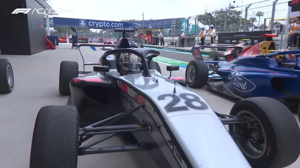 Nonostante un regime di safety car che ha ricompattato il gruppo a seguito dell’incidente tra Chloe Chong e Joanne Ciconte, Pin ha resistito all’offensiva finale di Alisha Palmowski, giunta seconda sotto la bandiera a scacchi. Due delle tre vetture del gruppo Red Bull sono salite sul podio visto che Chloe Chambers ha recuperato dall’ottavo posto in griglia fino al terzo, ribadendo l’ottimo feeling instaurato con la pista di Miami.