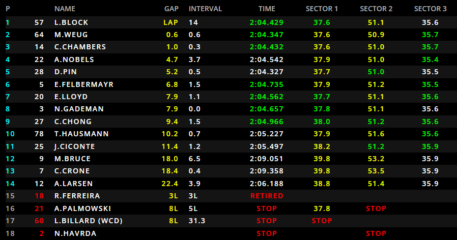 È purtroppo proseguito il finora tragico weekend di Alisha Palmowski, che dopo i problemi tecnici che l’hanno relegata in fondo alla griglia di partenza è stata costretta al ritiro per un incidente piuttosto singolare occorsole durante il settimo giro. La britannica è finita a muro perdendo improvvisamente il controllo della sua vettura, forse a causa di un precedente contatto che ne ha danneggiato una sospensione.