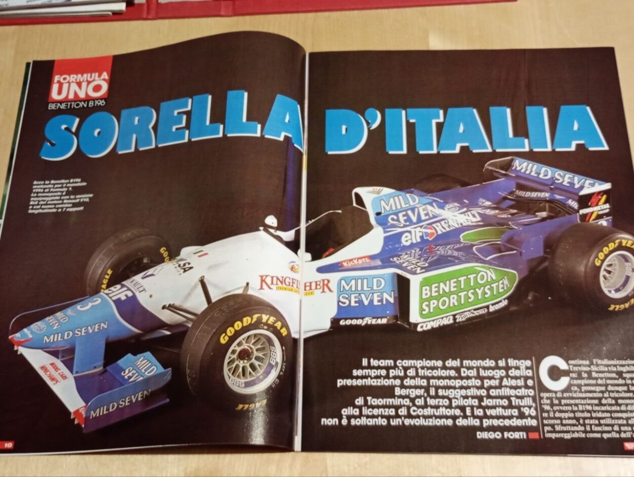 Trent’anni fa, nella splendida cornice dell’anfiteatro di Taormina, veniva presentata al mondo la Benetton B196. Una monoposto che, nelle intenzioni del team guidato da Flavio Briatore, avrebbe dovuto proseguire il ciclo vincente della squadra anglo‑italiana – che proprio dal 1996 avrebbe ottenuto la licenza di costruttore italiano – presentandosi al via della stagione da campione del mondo in carica sia tra i piloti sia tra i costruttori.