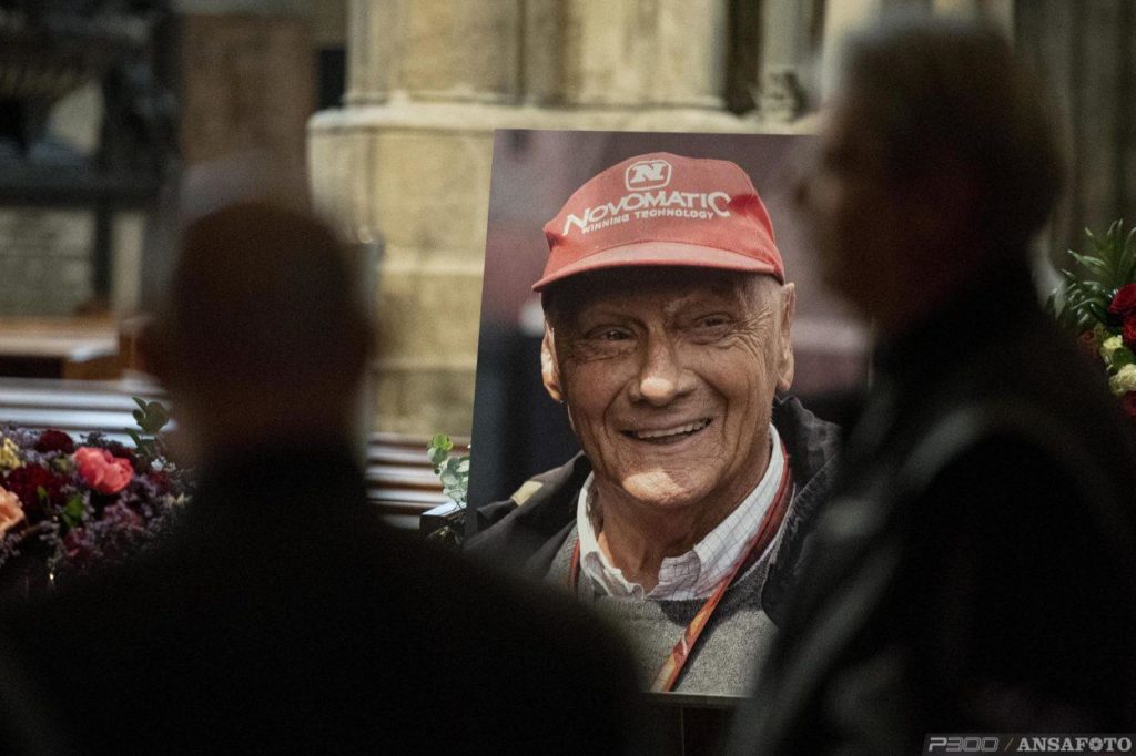 Tantissimi i presenti: Alain Prost, Nigel Mansell, David Coulthard, Nico Rosberg, Jean Alesi, Nelson Piquet, Helmut Marko, Gerhard Berger, Arturo Merzario, Arnold Schwarzenegger. Presente anche Daniel Brühl, l’attore che ha interpretato Lauda nel film “Rush”. Sul feretro, affiancato da una foto che lo ritrae sorridente, è stato posto un casco dello scomparso pilota austriaco dalla moglie Birgit e dai figli Lukas e Mathias.