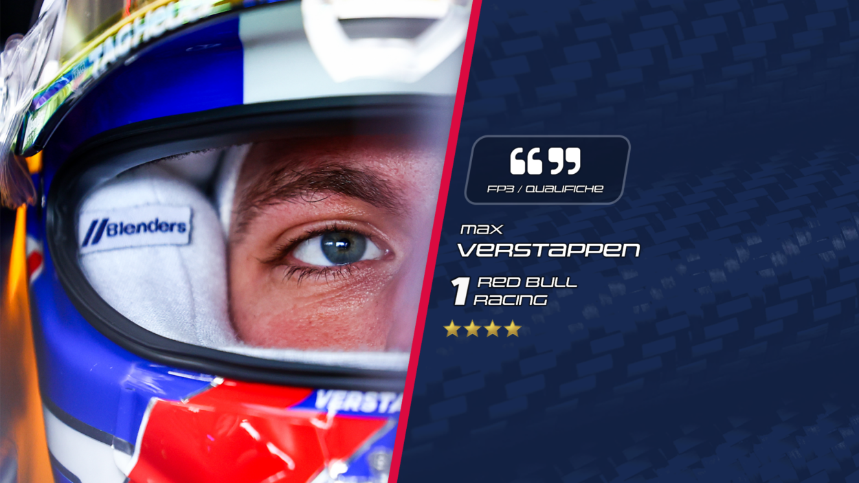Max Verstappen: “Penso che la prestazione di oggi sia stata il meglio a cui potessimo aspirare. Le libere sono state piuttosto difficili, ma abbiamo apportato diversi miglioramenti alla macchina e il feeling è migliorato decisamente. Il divario con la McLaren è ancora ampio e al momento non abbiamo il loro stesso passo, quindi c’è ancora del lavoro da fare. Tuttavia la macchina ci ha dato abbastanza fiducia per spingere. Alla fine, la P3 di oggi è un buon risultato ed è positivo aver trovato un po’ più di velocità. Per domani, non mi importa se sarà asciutto o bagnato, ma penso che per i tifosi sarebbe molto meglio se ci fosse bel tempo. Darò semplicemente il massimo e vedremo come andrà la gara”.