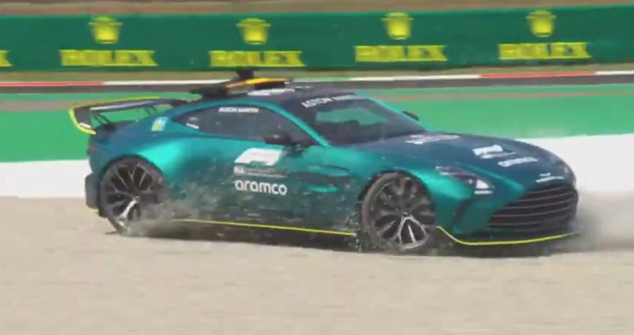 Non è iniziato bene il weekend di Monza per la Safety Car, la Aston Martin Vantage guidata da Bernd Maylander. Nel pomeriggio di oggi la vettura che guida le monoposto durante le fasi di bandiera gialla è stata protagonista di un incidente alla Parabolica, ora curva Alboreto.