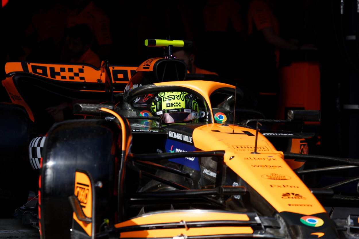 L’inglese della McLaren si prende il miglior tempo a fine sessione. Red Bull indietro, Verstappen con +5 in griglia per domenica