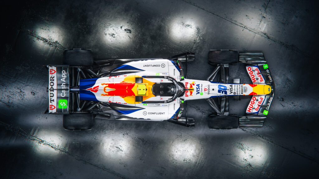 Rispetto alla casa madre, che ha scelto una livrea retrò, il logo Red Bull e il toro sul cofano restano “moderni”, senza il bordo bianco originale. La finitura resta opaca, sempre rispetto a Red Bull che è tornata sul lucido.