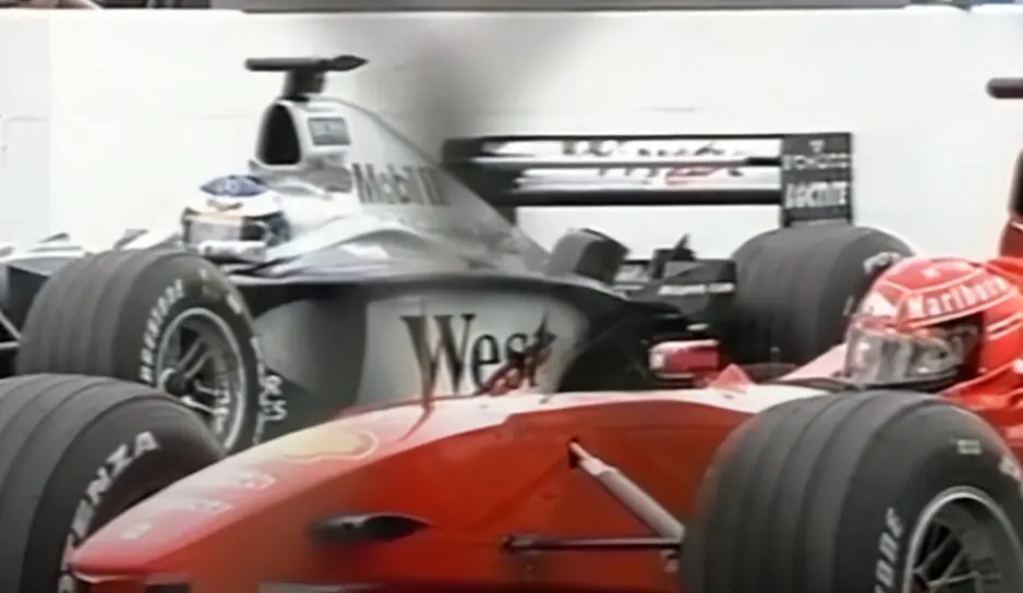 A Suzuka il cielo è nuvoloso. Tra le tante insidie di una domenica che può diventare storia c’è la possibilità che inizi a piovere, come ad aggiungere variabili alle preoccupazioni di un match point del genere. Si parte per il giro di ricognizione e i battiti salgono alle stelle. Michael e Mika si fermano sulle loro piazzole, si girano uno verso l’altro, quasi a cercarsi, prima di dare il via alle ostilità. Uno start che fa sudare subito freddo il popolo rosso.