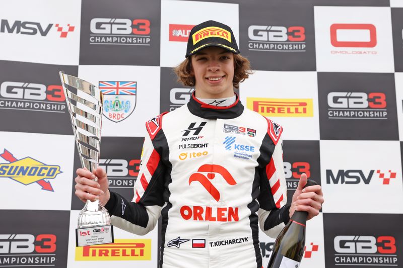 La prima gara del weekend si è disputata nel pomeriggio di sabato ed ha visto un assolo da parte di Tymek Kucharczyk, alla sua prima vittoria in GB3 al termine di una gara dominata dal primo all’ultimo giro. Partito dalla pole position, il pilota polacco non ha avuto problemi a prendere immediatamente il largo, aumentando il proprio vantaggio sugli avversari ad ogni giro tagliando poi il traguardo con quasi otto secondi di vantaggio su McKenzy Cresswell, secondo in Gara 1.