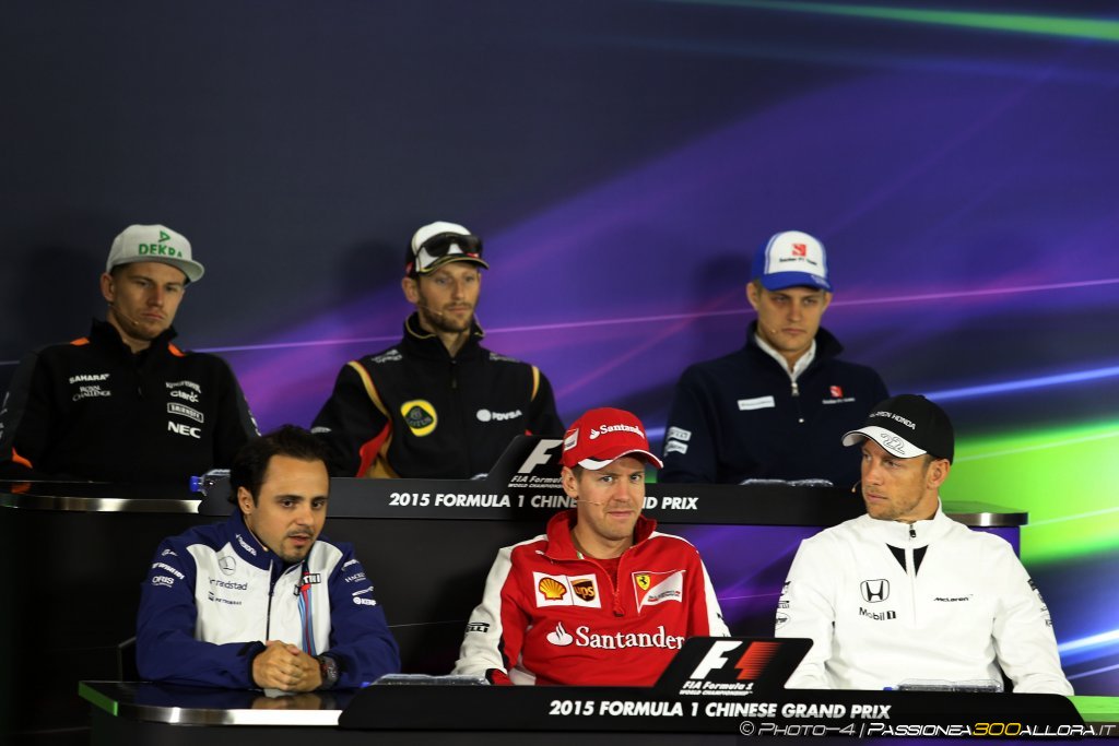 Vi riportiamo sinteticamente quanto detto dai piloti nella conferenza stampa del giovedì a Shanghai. I piloti presenti erano Marcus Ericsson (Sauber), Nico Hulkenberg (Force India), Romain Grosjean (Lotus), Felipe Massa (Williams), Sebastian Vettel (Ferrari) e Jenson Button (McLaren).