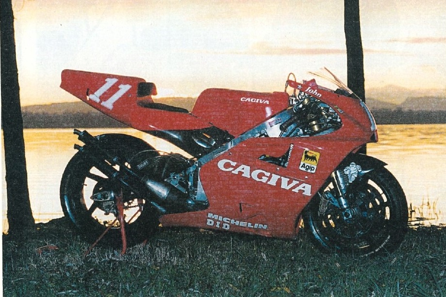 Una moto eccezionale, sviluppata senza badare a spese e capace di riportare l’entusiasmo tricolore dopo gli anni d’oro firmati dal binomio Agostini-MV Agusta. Dopo lo shock causato dal ritiro di Wayne Rainey a causa della terribile caduta di Misano 1993, il mondiale ripartì da tre certezze: il campione del mondo in carica, Kevin Schwantz in sella alla Suzuki numero 1 che prese il posto dell’amato 34, pronto a riconfermarsi; la voglia di rivalsa di Doohan, in pieno recupero fisico dopo un inverno difficilissimo e supportato dalla leggendaria NSR; la Cagiva e Kocinski, protagonisti di un inverno strepitoso e capaci di dominare la prima gara di Eastern Creek, mandando un chiaro segnale a tutti gli avversari del mondiale.