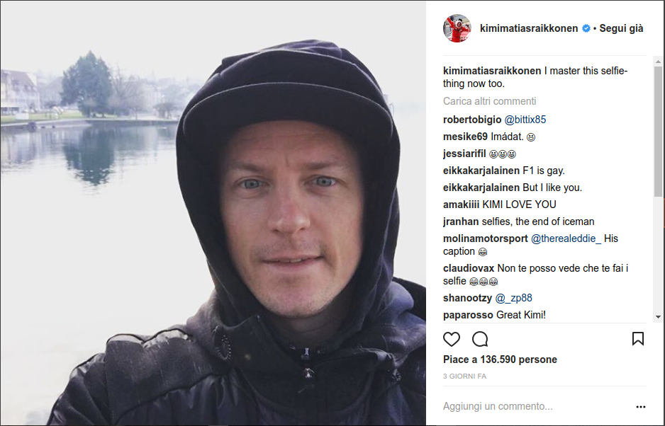 Abbiamo decantato per anni la totale idiosincrasia di Kimi Raikkonen nei confronti del mondo mediatico, dei social, per tutto ciò che non è un volante, un abitacolo, un paio di pedali. E lui non ha fatto assolutamente niente per convincerci del contrario. Per tutta la carriera si è sempre mostrato monosillabico, scettico, infastidito, insomma menefreghista verso le faccende dell’informazione.