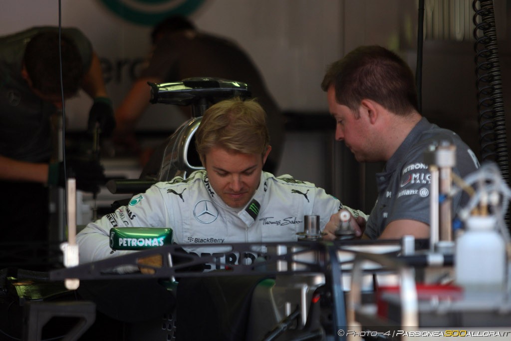 Nico Rosberg, con la Mercedes, ha ottenuto il miglior tempo nelle prime libere del Gp di Monaco, a Montecarlo.
