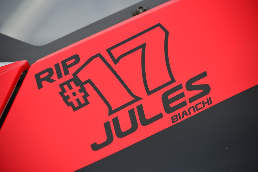 Ho scelto come foto di copertina il primo mio scatto di oggi. Su una delle Porsche SuperCup parcheggiate nel paddock di Monza campeggia un adesivo che ricorda Jules. E’ stato un modo strano di iniziare la giornata. Sono arrivato in autodromo con Hamilton dietro la nostra auto. In moto, ma riconoscibile dalla classica catena al collo e dal braccio tatuato.