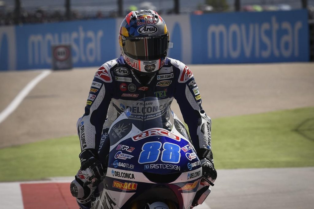 Allo scatto Martín mantiene la testa della corsa senza problemi, e da questi primi istanti non la mollerà più per il resto della gara. Il suo compagno Di Giannantonio si mette secondo in lotta con Masia ma già alla fine del primo passaggio “Diggia” ha 1.5 secondi di ritardo rispetto al madrileno. Sin dai primi giri inizia la rimonta dell’ex-leader del mondiale Bezzecchi, che da 18°, alla fine del secondo giro, è già nono.