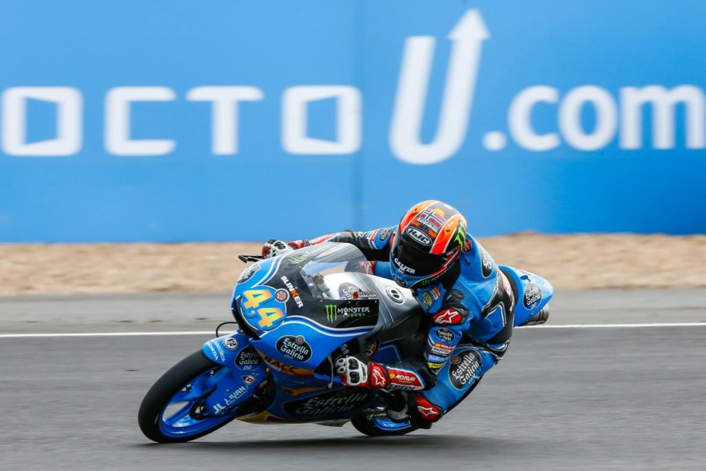 Per la terza volta quest’anno, Aron Canet sale sul gradino più alto del podio. Per il giovane spagnolo un successo non molto importante in chiave iridata, ma importantissimo per il morale e per il futuro, dato che il #44 si potrebbe porre, nel 2018, come favorito per il titolo Moto3. Una gara, quella a Silverstone, macchiata però dalla bandiera rossa all’ultimo giro, esposta a causa delle condizioni a bordo pista di Juan Francisco Guevara, caduto dopo un contatto con Bendsneyder alla penultima curva del penultimo giro; le sue condizioni sono incerte ed è stata utilizzata l’ambulanza per riportarlo al centro medico. Completano il podio Enea Bastianini, il suo primo dell’anno, e Jorge Martin, autore di una bella gara all’attacco nonostante l’infortunio alla caviglia destra. Al quarto posto è giunto Gabriel Rodrigo, mentre gli altri due partenti dalla prima fila sono arrivati in quinta posizione Mir e in settima Fenati. Gran peccato per il pilota italiano, dopo la qualifica impeccabile di ieri pomeriggio.