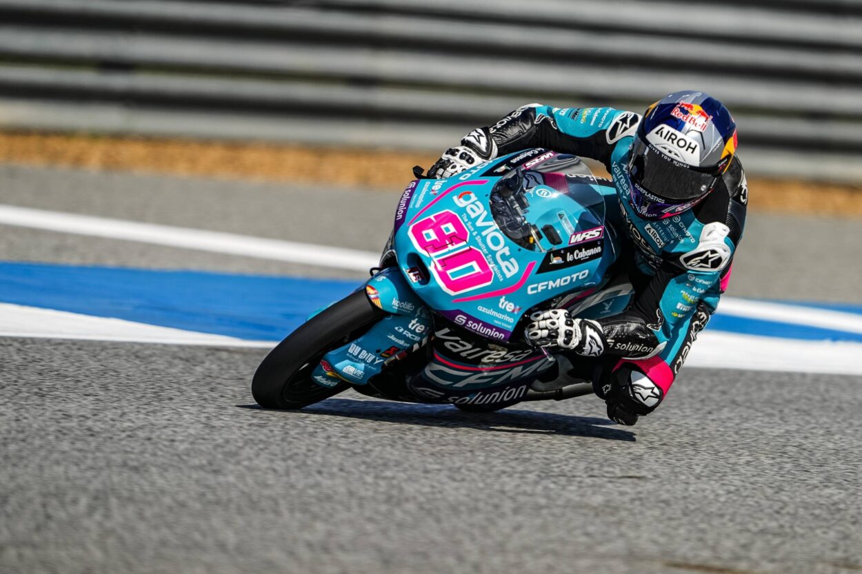 L’ispano-colombiano ha conquistato una gara accorciata in origine a dodici giri per far fronte alle condizioni dell’asfalto, ancora umidiccio dopo la pioggia del mattino e nonostante il warm-up della MotoGP. La corsa è stata dichiarata bagnata, ma i piloti di testa hanno corso tutti quanti sulle slick. Per “El Dorado” si tratta anche della quinta vittoria consecutiva, un altro record per la categoria nata nel 2012.