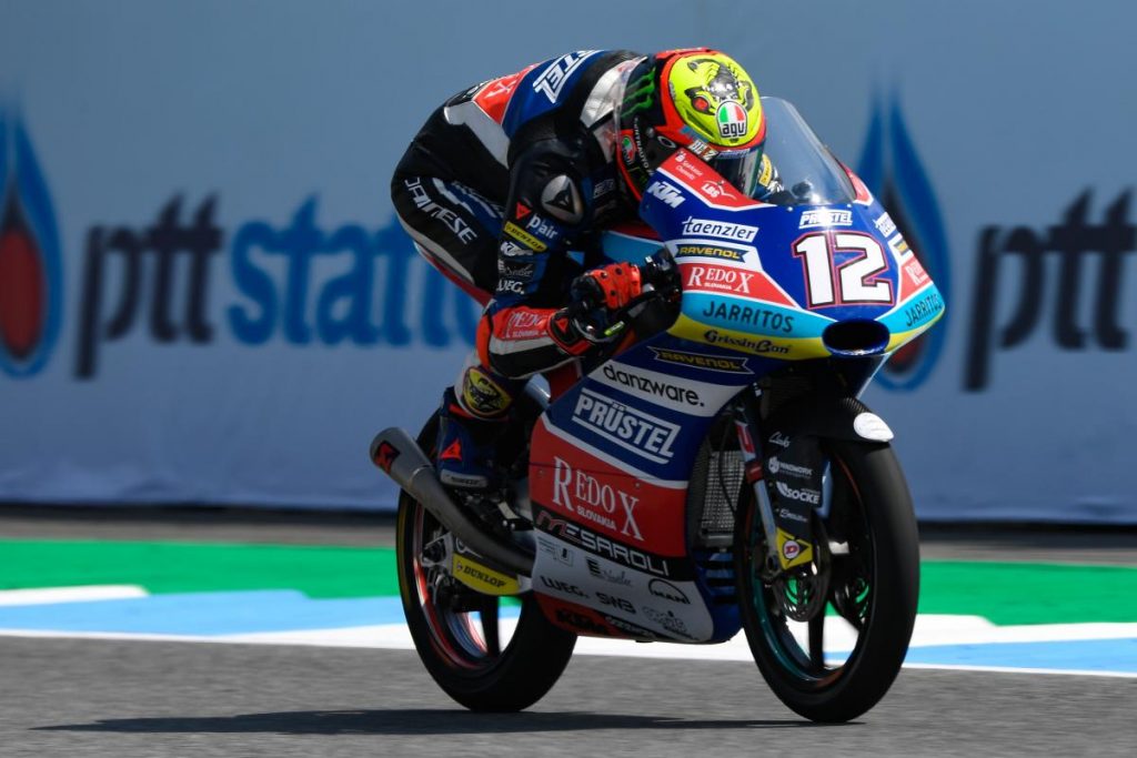 La prima fila sarà completata da Masia e Masaki, mentre in seconda scatteranno proprio il pilota del team Snipers, Antonelli e la KTM ufficiale guidata da Darryn Binder. Di Giannantonio scatterà dalla terza dietro a Bastianini, che all’ultima curva a gomito dell’ultimo giro disponibile ha perso l’anteriore travolgendo l’incolpevole Chantra; poteva andare molto peggio, considerando che Lopez, all’interno della stessa curva, ha sfiorato di un pelo il casco del #33.