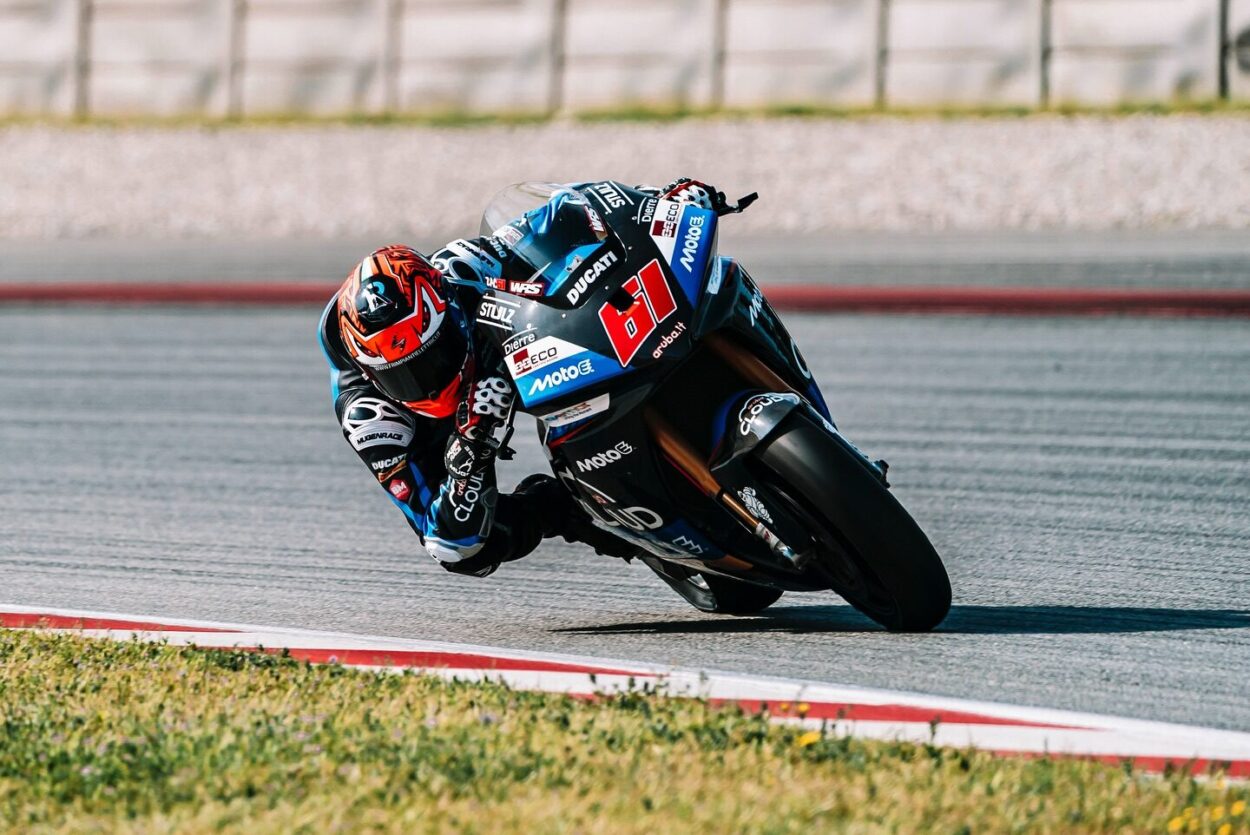 Il campione 2019 della serie elettrica, Matteo Ferrari, apre la terza fila davanti al debuttante Lorenzo Baldassarri e alla sorprendente María Herrera. Nessun tempo per Mattia Casadei durante la Q2, il quale è scivolato all’ingresso della Dunlop Chicane al suo primo giro lanciato.