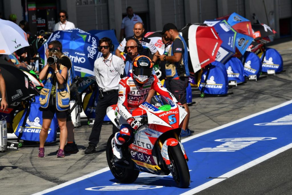 Altri tre team differenti si schiereranno in seconda fila, e ad aprirla sarà Jesko Raffin per il team Dynavolt. Lo svizzero ha preceduto di 35 millesimi il nostro Niccolò Canepa, che ha fatto nettamente meglio del suo compagno Randy De Puniet, autore di un errore che l’ha portato a oltre tre secondi dal tempo fatto da De Angelis. Maria Herrera ha portato invece la moto del team Ángel Nieto in sesta posizione, dopo una bella qualifica come quella vista in Austria.