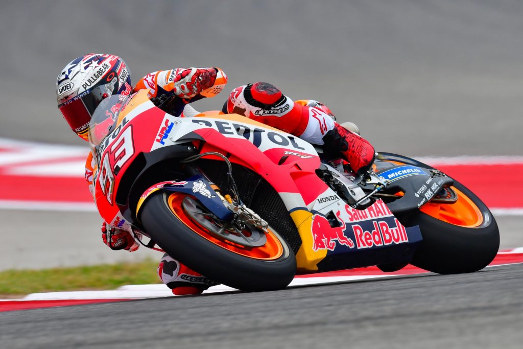 Le polemiche e le discussioni relative alle sue ultime uscite in Argentina e ieri in prova non sembrano aver intaccato il morale di Marc Márquez, perché lo spagnolo è ancora l’uomo da battere qui in Texas. Il warm-up lo ha confermato, con lo spagnolo che è stato capace di mettersi al comando della sessione e di rifilare sei decimi al (nuovo) poleman della gara di oggi, Maverick Viñales. Probabilmente saranno proprio i due spagnoli a contendersi il successo, con Márquez che dovrà giocoforza rimediare alla penalizzazione in griglia, che lo farà partire dalla seconda fila. Segue poi l’attuale leader del mondiale Cal Crutchlow, pronto a far parlare di sé anche qui in Nord America dopo il successo in Argentina; quarto Iannone su Suzuki, che in questa gara sembrerebbe avere l’opportunità di pareggiare i conti col compagno Rins (settimo nel warm-up).