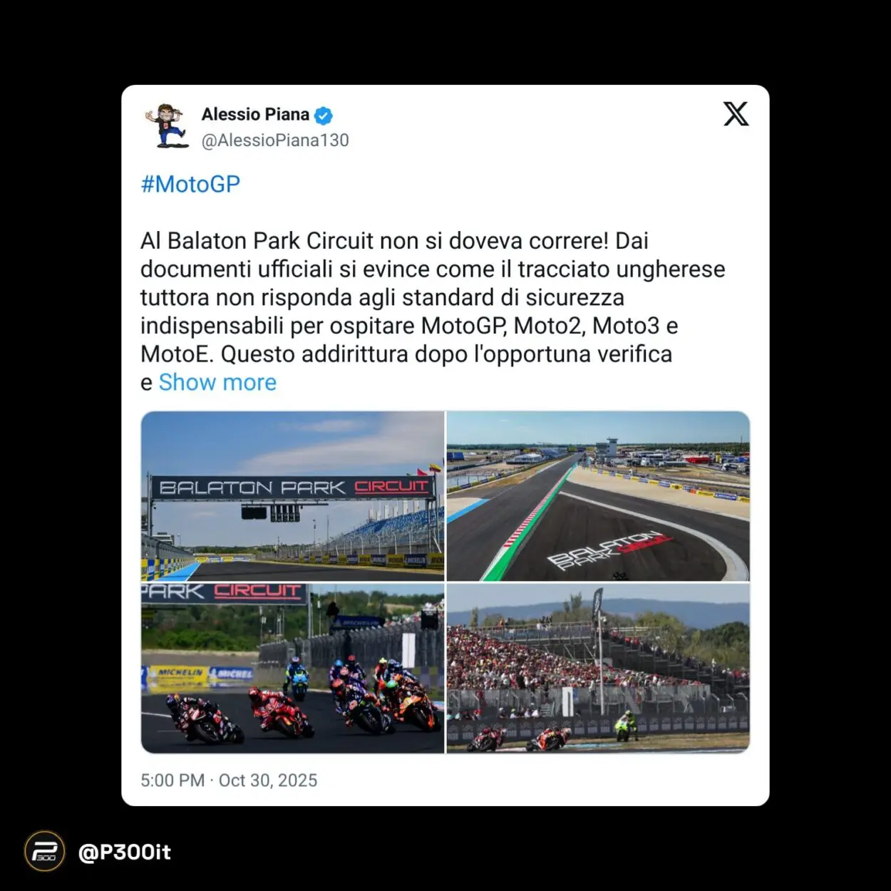 Il Motomondiale, e con essa le quattro categorie che la compongono (MotoGP, Moto2, Moto3 e MotoE) può correre sui soli tracciati di grado A, il livello più alto in termini di misure di sicurezza e per gli spazi delle vie di fuga. Tuttavia, ed è clamorosa la svista di cui si sta parlando, il Balaton Park (su cui si è disputato il GP Ungheria 2025) aveva ancora un’omologazione al grado B, nel weekend del 22-24 agosto durante cui si è svolto il Gran Premio.