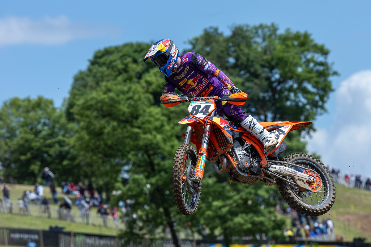 Giornata dai due volti ben distinti per Herlings, terzo assoluto e al suo podio numero 140 in carriera. Nella frazione d’apertura “The Bullet” è apparso addirittura reticente, patendo il confronto con Pauls Jonass e raggiungendolo di nuovo (senza successo) solo negli ultimi giri senza andare oltre la sesta posizione. Con l’arrivo della pioggia e l’appesantirsi della pista, il cinque volte campione del mondo ha annusato l’occasione propizia e si è scatenato, senza mai lasciare troppo vantaggio a Febvre e azzannando la preda proprio quando la bandiera a scacchi era prossima.