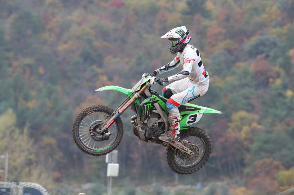 Romain Febvre (Monster Energy Kawasaki Racing Team #3), 3° classificato (2-3): “Durante la settimana abbiamo lavorato tanto sulle partenze e in gara-1 è andata molto bene. Le sensazioni erano buone e ho portato a termine degli ottimi sorpassi per concludere al secondo posto. Seewer ha guidato molto bene ma a due giri dalla fine ho visto una possibilità di superarlo. Avevo un vantaggio notevole sugli inseguitori, quindi sapevo che anche con un errore avrei concluso comunque secondo. Sfortunatamente ho avuto un incidente piuttosto grosso, ma non mi sono fatto nulla. Nonostante la brutta caduta non ho avuto neanche un graffio. In gara-2 non sono partito altrettanto bene e sono rimasto piuttosto indietro, credo di avere superato otto piloti solo nel primo giro, poi sono risalito terzo e Seewer ha commesso un errore. A quel punto ho iniziato a farmi troppe domande, ero indeciso se attaccare per la vittoria del Gran Premio o se tenermi solo la tabella rossa, poi ho perso ritmo.