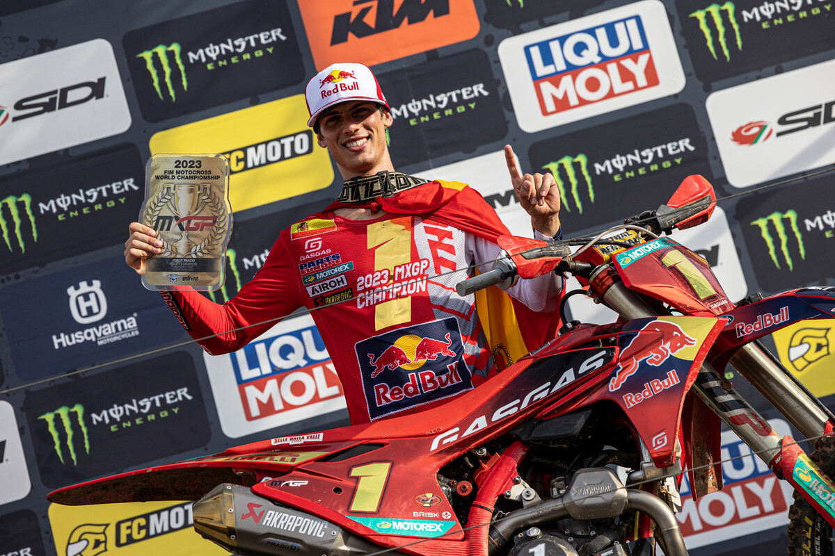Ieri abbiamo parlato di come Andrea Adamo abbia vinto il titolo MX2 nella piena consapevolezza di non poter essere sempre il più forte e anche Prado ha imparato la lezione. È normale che un 19enne debuttante in MXGP dopo un mondiale MX2 da 16 Gran Premi vinti su 17 disputati si lasci ingolosire dai suoi ricchi numeri e questo è probabilmente ciò che ha penalizzato Prado nelle stagioni passate, ma i dati 2023 evidenziano un netto cambio di registro: due Gran Premi vinti su 18, pur con 14 successi di manche, dimostrano come il nuovo campione abbia ben compreso il teorema della “bigger picture” che sta assumendo sempre più importanza nel motocross odierno.