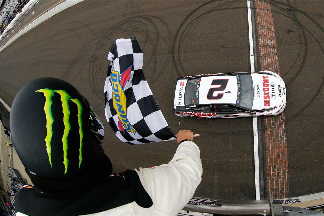 Il gruppo è di nuovo compatto, ma il problema per i due di testa è che dietro a loro ora c’è Keselowski con gomme notevolmente più fresche. L’ultimo restart è a 3 giri dalla fine e Brad brucia subito Bowyer mettendosi all’inseguimento di Hamlin. Al penultimo giro Keselowski attacca Hamlin e sono protagonisti di un side-draft molto ravvicinato, tant’è che dopo il contatto fianco contro fianco Jones – portatosi in terza posizione – sembra poterne approfittare, ma alla fine Keselowski completa il sorpasso e si invola verso la vittoria.