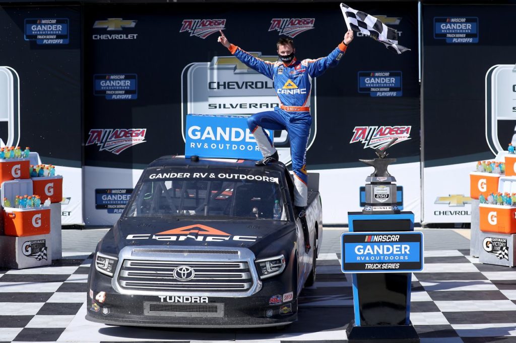 Per la quinta volta di fila a Talladega vince un pilota non più in corsa per il titolo e per trovare il primo di questi bisogna passare anche Bayne secondo e Chandler Smith (terzo e che mantiene il #51 del KBM in lotta per il titolo a squadre) fino a trovare Rhodes 4°; completano la top10 Rohrbaugh (top5 anche qui dopo Daytona), Anderson, Moffitt, Crafton, Grala e Kraus.