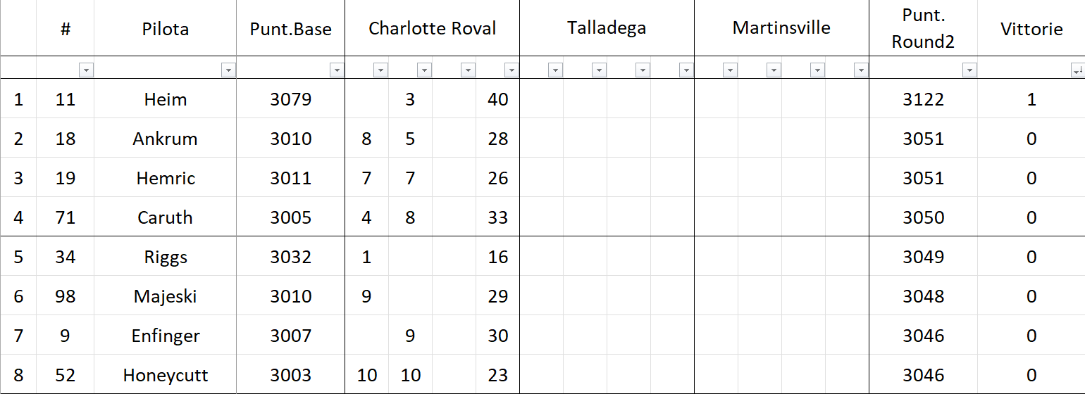 La gara a Charlotte Roval ha regalato, oltre a spettacolo e azione, anche numerosi record. Heim, grazie al suo decimo successo stagionale, diventa il pilota in grado di vincere più gare all’interno di una singola stagione del campionato. Crews e Ruggiero, inoltre, regalano a Tricon la prima top 3 completa della sua storia. L’alfiere dell’#11 è già al Championship 4. Sarà la sfortuna il suo più grande avversario in ottica titolo? Solo il tempo ce lo dirà.