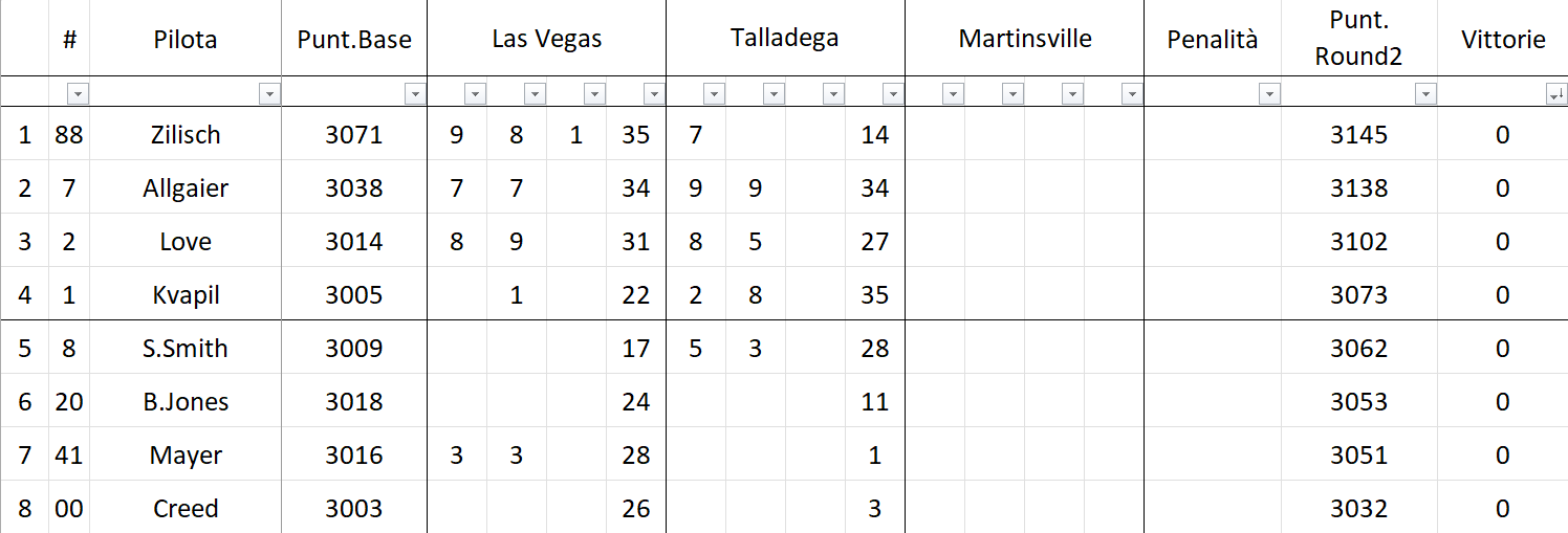 La classifica generale viene dunque rivoluzionata: malgrado l’incidente Zilisch è qualificato a Phoenix in base ai punti ottenuti, ma lo è anche Allgaier. Due i posti assegnati, il terzo quasi visto che Love è addirittura a +40. Poi tutti a rischio: Kvapil (+11), Smith (-11) saranno in battaglia e sperano che uno fra Jones (-20), Mayer (-22) e Creed (-41) non vinca a Martinsville. Ancora più complicata la situazione owner: dopo la #19 va al gran finale anche la #21, dunque una fra la #88 e la #7 è a rischio per la Championship 4.