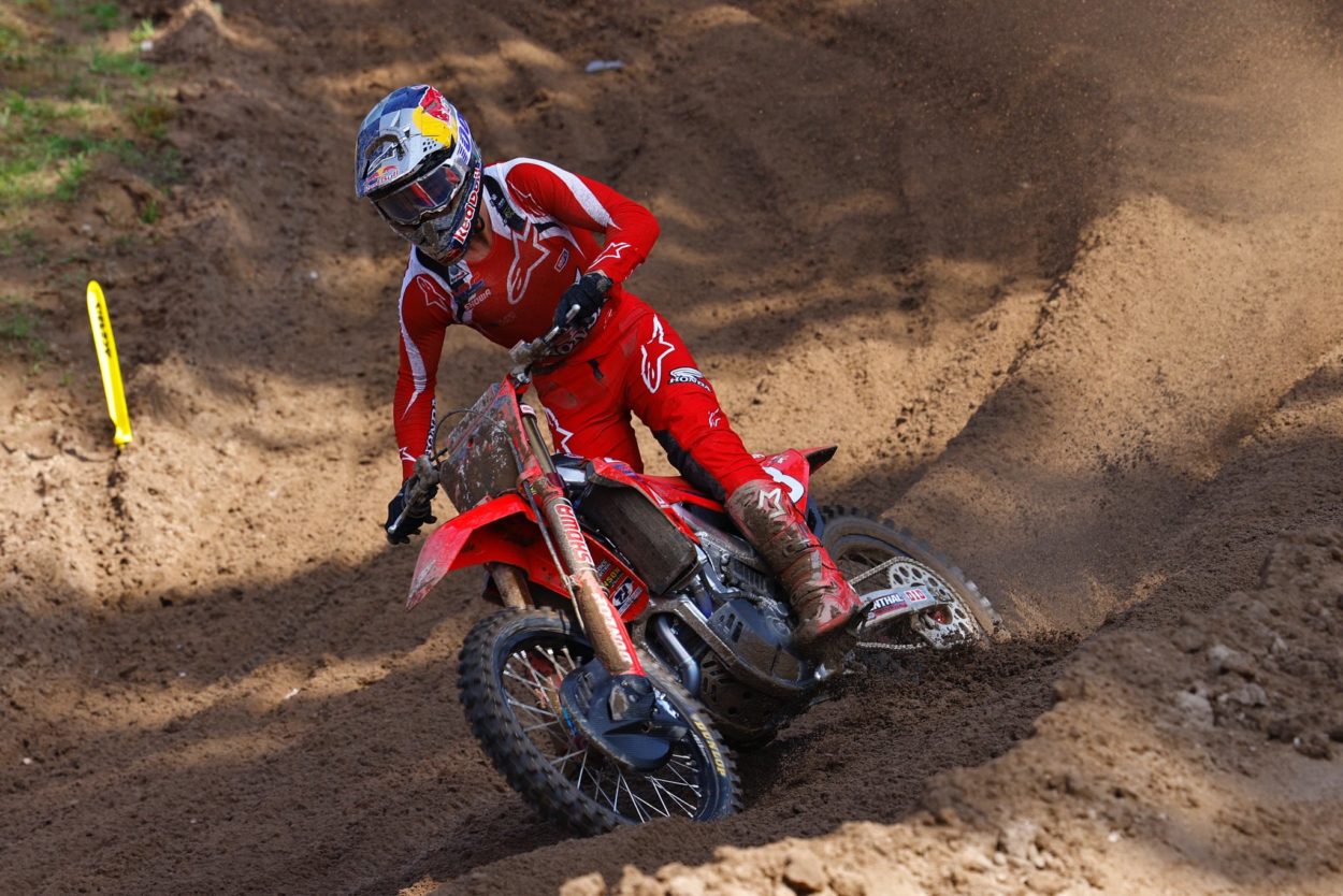 L’imbattibilità di Jett Lawrence nel National 450cc 2023 ha girato la boa di metà stagione. Anche sulla temuta sabbia di Southwick, in un sabato pomeriggio dalle temperature decisamente estive, il fuoriclasse australiano del team Honda ha sbancato entrambe le manche ribadendo con forte prepotenza il suo strapotere sulla classe regina AMA.