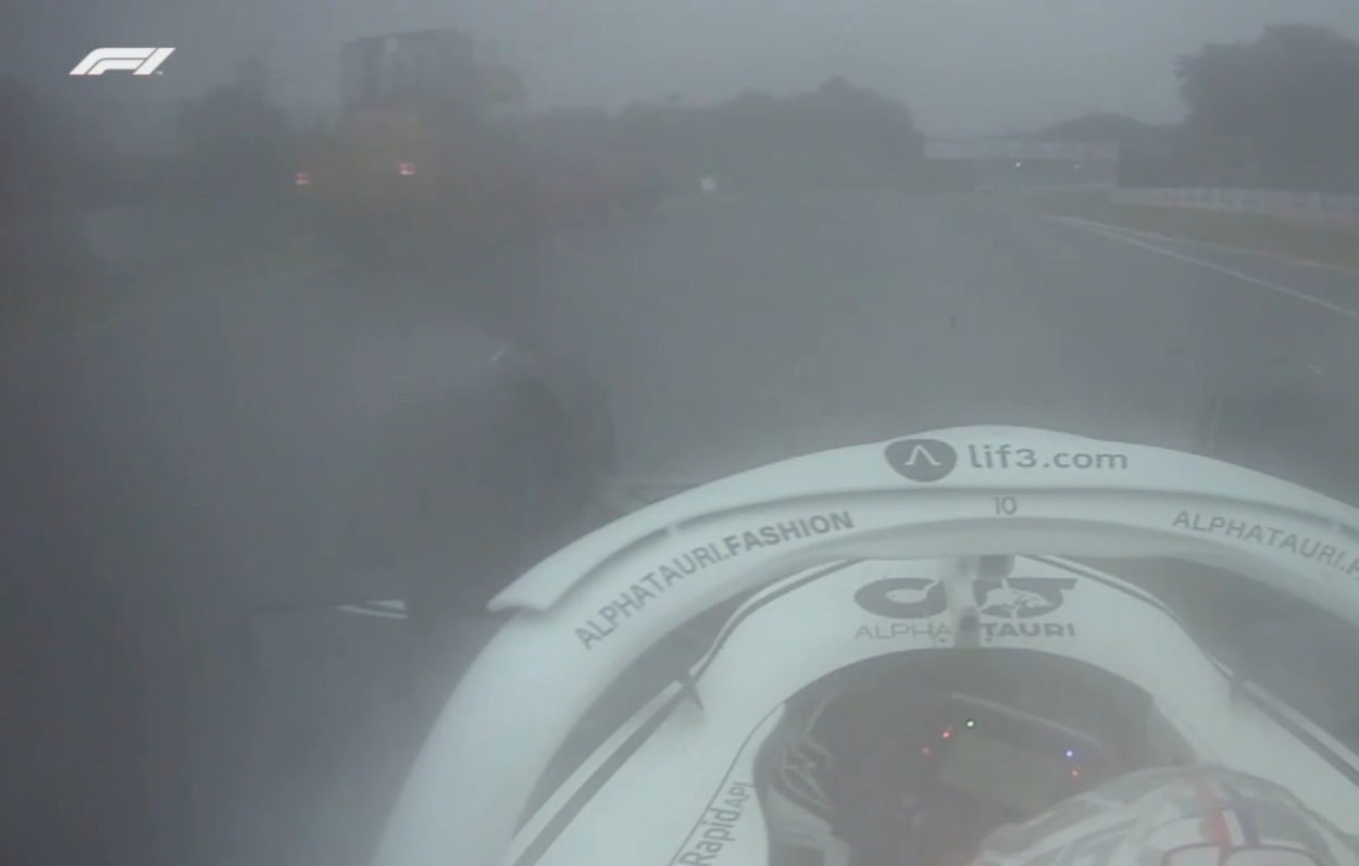 Suzuka, la pioggia, la visibilità zero e una gru in traiettoria. Troppo brutto per essere vero, ma lo è