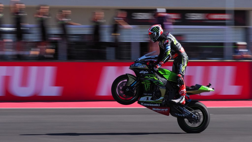 La marcia verso la conquista di altri nuovissimi record continua per Jonathan Rea. Il campione del mondo, non soddisfatto del successo di ieri, ha completato la doppietta quest’oggi in totale scioltezza, confermando come non ci siano limiti apparenti alle sue capacità. Con questa vittoria, la settantesima personale, il nordirlandese diventa il primo pilota in assoluto a segnare dieci vittorie di fila nelle derivate di serie (fino a ieri era a pari merito con Neil Hodgson e Colin Edwards a quota nove).