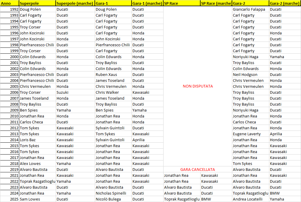 Avendo citato Yamaha, la mente torna alla vittoria in Gara 2 di Andrea Locatelli, l’unica finora conquistata dall’ex-iridato in SSP. “Loka”, al momento, è comunque il migliore degli yamahisti in 11a posizione, ma la fatica immane che stanno facendo le R1M è sotto gli occhi di tutti.