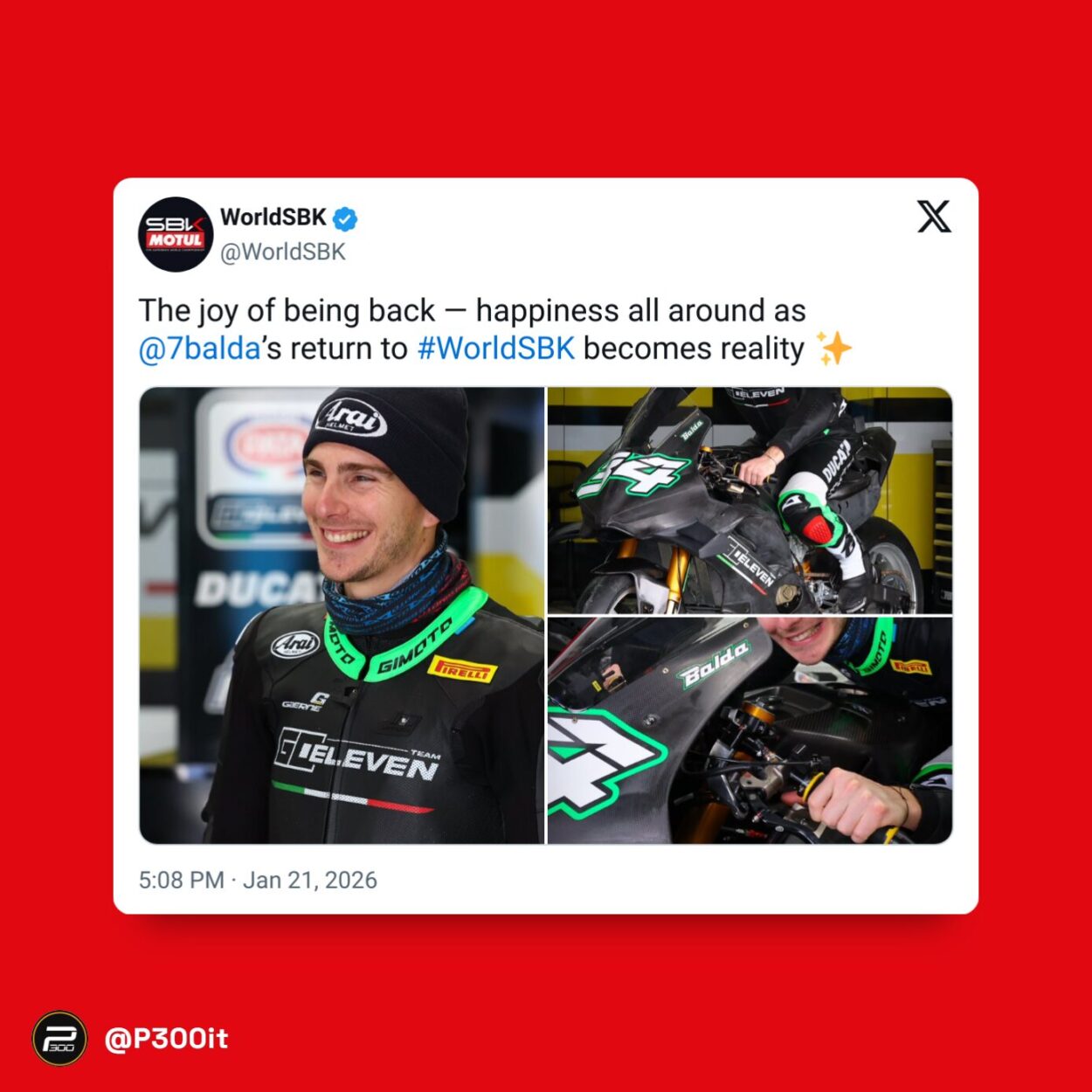 L’anno 2026 delle derivate è ufficialmente cominciato, con la prima giornata di test della SBK andata in scena quest’oggi, sulla pista di Jerez de la Frontera. Su un asfalto bagnato per quasi tutta la durata dei turni, il più veloce è stato Danilo Petrucci, seguito da Yari Montella e Miguel Oliveira, compagno di squadra dell’umbro in BMW.