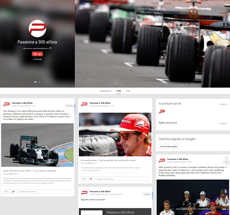 Da oggi Passione a 300 all’ora dispone anche di una pagina ufficiale Google +.