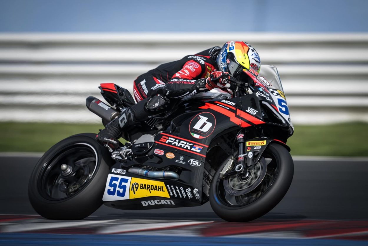 Lo scippo subito a Donington Park della vittoria di Gara 2 della SSP, provocato dal superamento dei limiti della pista di pochissimi millimetri, ha sicuramente caricato all’inverosimile Yari Montella ed il team Barni Racing e la prova di ciò è arrivata durante il venerdì del Round Repubblica Ceca.