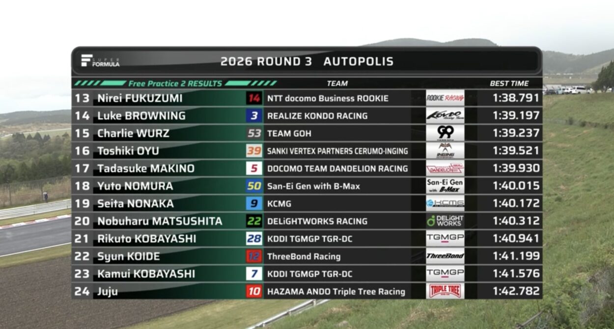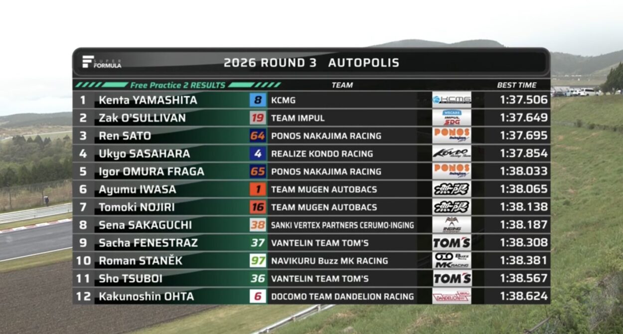 Super Formula – Autopolis 2026: Classifica Free Practice 2