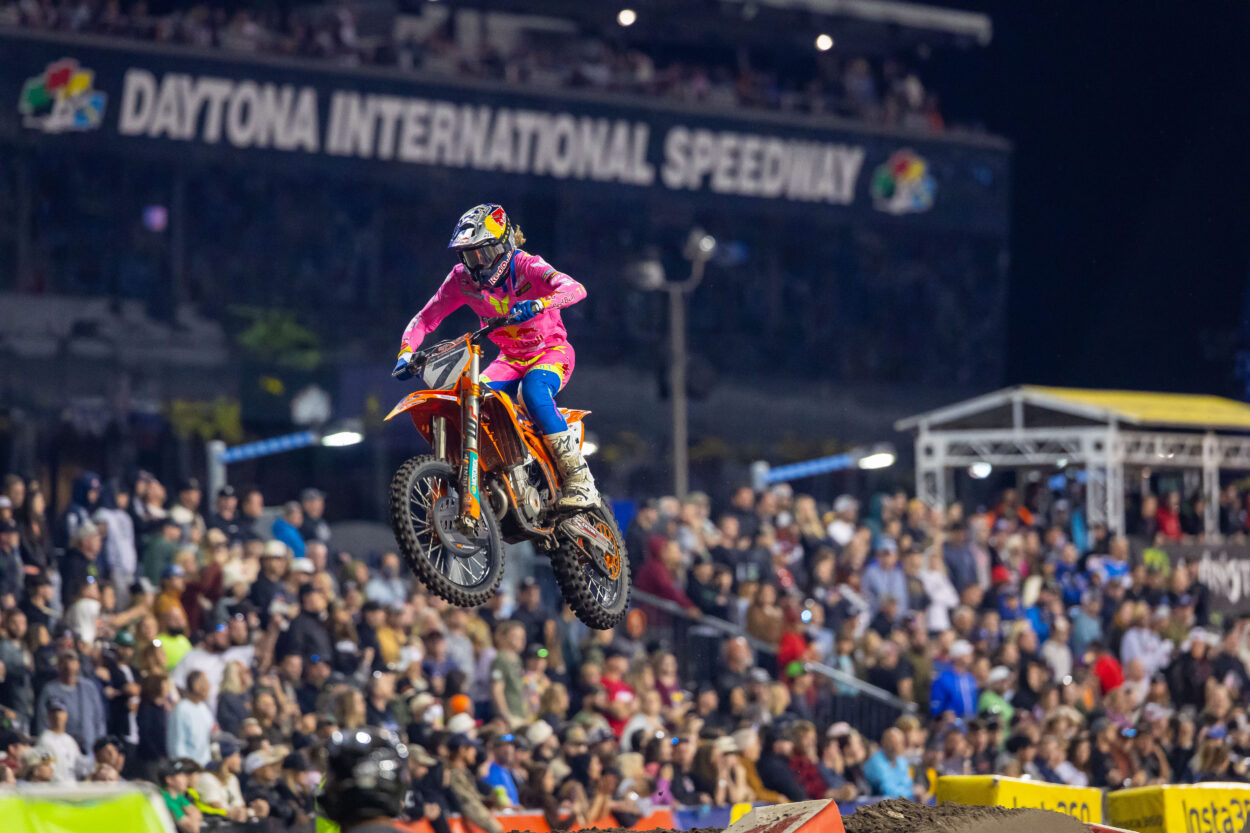 Aaron Plessinger (Red Bull KTM Factory Racing #7), 3° classificato 450cc: “Sono piuttosto soddisfatto di questo podio, dopo un inizio di stagione di questo genere. Voglio dedicarlo ad un mio amico, Jesse Waters, a cui è stato diagnosticato un cancro recentemente. Di sicuro ha seguito la gara da casa. Dopo due 22esimi, un settimo, un ottavo e un nono, finalmente è stata una bella gara. Adoro questa pista, questo luogo, e qui corriamo sempre per Dale (Earnhardt, leggenda della Nascar scomparso a Daytona nel 2001, ndr)! È stata una bella serata!”.