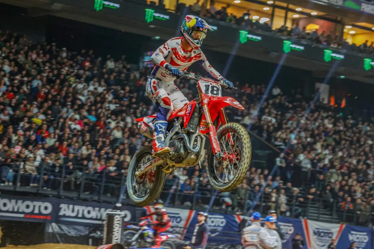 da Parigi – La prima serata del Supercross di Parigi numero 42 ha avuto un dominatore assoluto ma questo non risponde al nome dei più grandi favoriti della vigilia, bensì del pilota che poteva essere indicato come il più nobile degli outsiders, Malcolm Stewart. Il pilota Husqvarna ha sbancato in tutte e tre le manche dimostrando una forma fisica strepitosa ad appena un mese e mezzo dal via della stagione AMA, mentre alle sue spalle la corazzata Honda si è sfaldata gara dopo gara. In SX2 ad intrattenere il calorosissimo pubblico della Défense Arena ci hanno pensato Luke Clout e Anthony Bourdon, con l’australiano momentaneamente in vantaggio sull’idolo di casa.