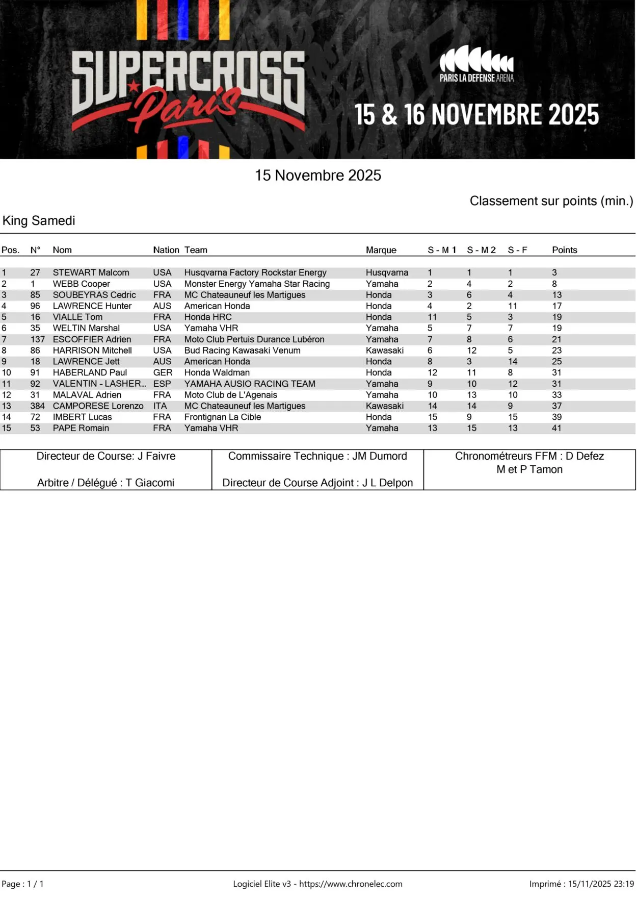La prima serata della Défense Arena premia un grande Stewart mentre la corazzata Honda affonda; in SX2 Clout prende un piccolo margine nel duello con Bourdon