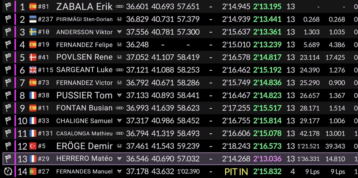 Nonostante abbia mancato la vittoria, proprio la pole position di ieri e il doppio podio in gara hanno permesso ad Andersson di confermarsi al comando del campionato, potendo anche allungare di due lunghezze il proprio vantaggio su Zabala. Lo spagnolo resta secondo in solitaria dato che il ritiro del sabato di Piirimägi ha spinto l’estone a pagare quasi trenta punti di gap dal vertice.