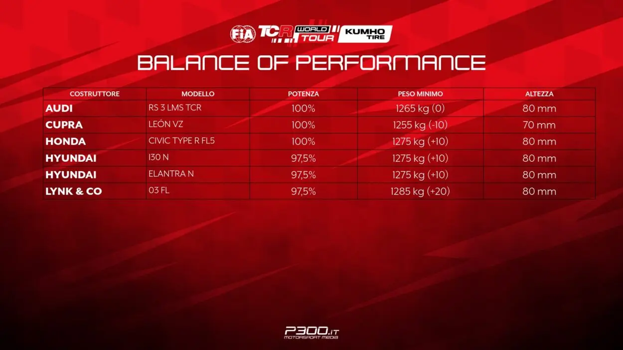 Rispetto all’ultimo evento disputato in Australia a metà settembre, WSC non ha effettuato ulteriori aggiustamenti sul BoP – al momento della pubblicazione di questo articolo -, legati ai sei modelli di vetture che saranno impegnate questo fine settimana a Inje.