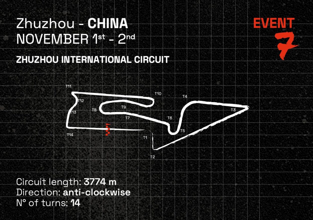 Quello di Zhuzhou è uno dei tracciati più corti dell’intera kermesse del 2025, non raggiungendo nemmeno i 3.8 chilometri di lunghezza. Quattordici sono le curve che portano il circuito cinese ad essere anche il secondo a girare in senso anti-orario.