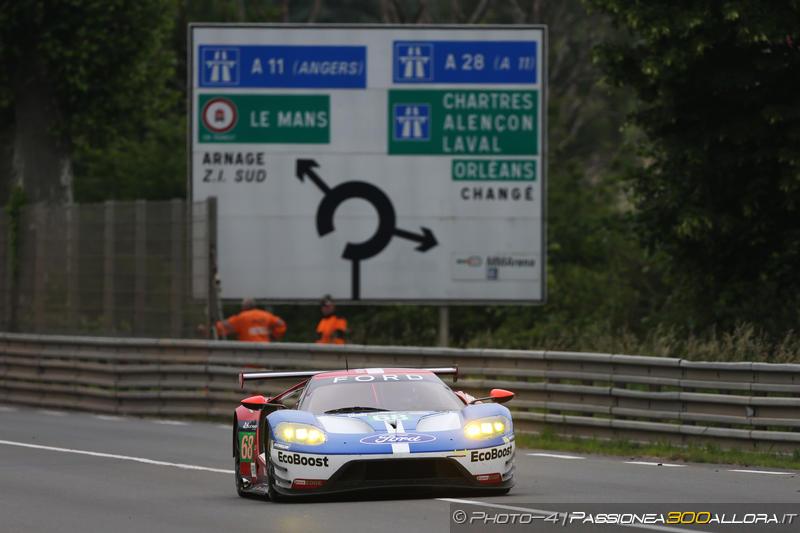 Superlativa doppietta per la Ford tra le GTE-Pro, con Dirk Müller che ha migliorato sul filo di lana il tempo segnato da Ryan Briscoe qualche minuto prima. Solo la Ferrari #51 è riuscita a fermare il dominio statunitense, con il terzo posto davanti alle altre due Ford, la #67 e la #66 che partecipano al campionato mondiale. Alle spalle della 458 #71, sesta, si è piazzata la terza Ferrari ufficiale, la cui qualifica è durata però pochissimi minuti a causa di un fuoripista di Fisichella a Mulsanne, che ha causato l’unica bandiera rossa della serata. Rimangono molto staccate le altre tre Case ufficiali: Porsche a 3″7, Aston Martin a 4″1, Corvette a 4″7.