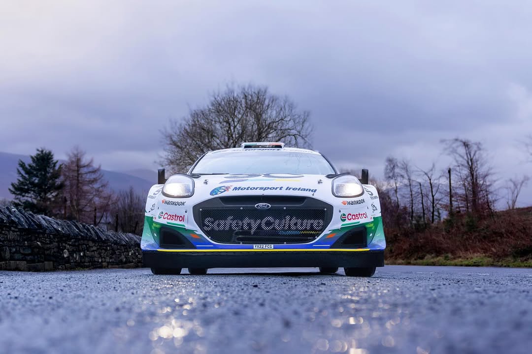 Il marchio dell’Academy compare sulle fiancate e nella parte bassa del cofano, affiancato dal logo Castrol. Gli accenti verde e blu nella sezione anteriore richiamano inoltre la livrea utilizzata da molti piloti dell’Academy negli ultimi anni, incluso lo stesso McErlean prima del debutto in Rally1.